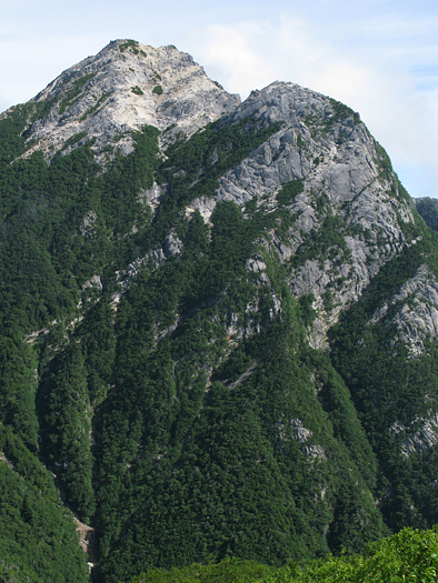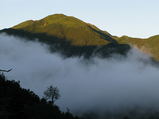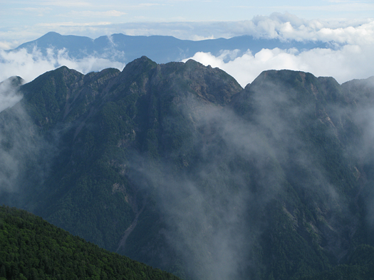雨の中新宿からバス3本乗り継ぎ北沢峠に向かう。止む気配はなく一人なら中止にしているところだがラッキーなことに峠に着いたら止んだ。同行の人は小学3年の時槍ヶ岳に登り、その後北アルプスはほぼ全域歩き、剱八ッ峰等も経験しているツワモノ。最近はブランクあって本格的に登るのは約10年ぶりというが、歩き方はしっかりしていてさすがである。 僕のアルプスデビューは小6の時の白馬岳で惨憺たるものだった。嵐で同行の人達はあきらめムードのなか、絶対行くんだと言い張る僕を止められず強行することになった。体が飛ばされそうな強風、寒気の中大池から雷鳥坂を登る。ひょう、小石交じりの雨が真横から、時には下から吹き上げ、ゴアはまだなく全員安物のカッパを着て中の服はびしょびしょ、父親はカメラのシャッターまで濡らしてしまった。一人体温低下で震えが止まらず僕は疲労で意識朦朧となりながらも尾根道を延々と奴隷のように歩く。やっとの思いで山頂に到着。感激などなく白馬山荘に命辛々逃げ込む。翌日も翌々日も嵐。猿倉の橋は洪水で破壊され大雪渓は下りられず、遭難者、死者も出る始末。3日間ほとんど視界ゼロでやむなく雨の中往路を下山した。しかし自然への畏怖、尊敬の念もこのとき感じ小学校卒業間近に