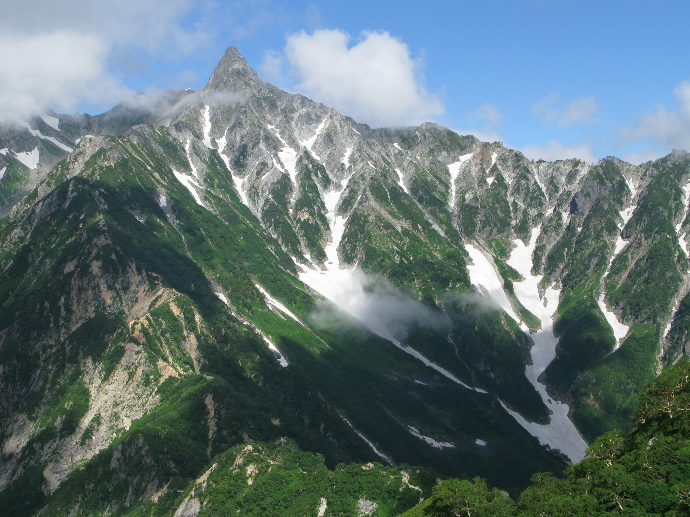 西岳ヒュッテより。左の東鎌尾根 (喜作新道) を登る。アップダウン激しい。右は北鎌尾根。表銀座コースは終始大展望が得られる。