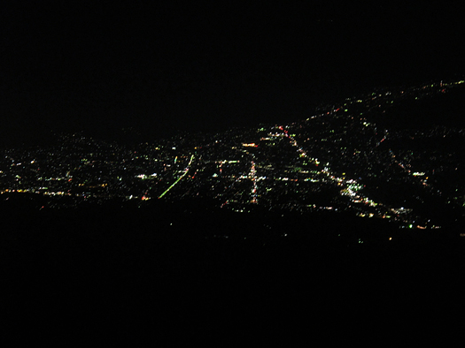 富士吉田市夜景。8合目小屋より。標高3400m。登ってる時は高山病は平気だったが小屋でひと寝りしたら頭が痛くなった。激痛ではないがしつこい痛みだ。
