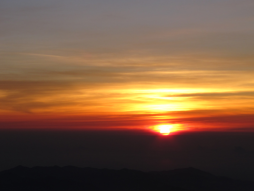 田部井淳子さんは言っていた。「ご来光は山頂からでなくても見えるのです!」 しかし今日はなんとなく流されて来てしまった。それにしても3776mという標高は凄い。クンジェラブ峠より917m、アイガーより199m低いだけだ。 |