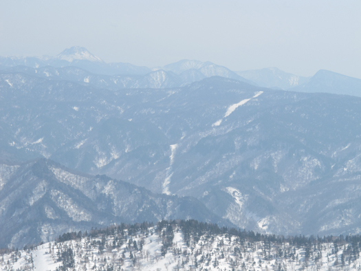 ![]() 日光連山。左から女峰山、大真名子山、太郎山、男体山。標高は2300〜2500mと高いが太平洋側なので雪は少ない。 |