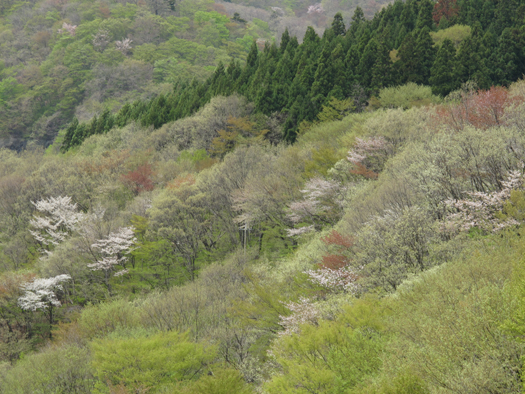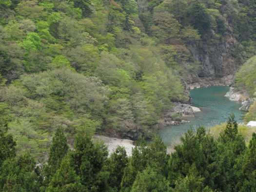 5/5帰り道、川冶温泉の近くでうっかりヘッドライトをつけたまま車のエンジンを切ってしまう。ものの5分でバッテリーが上がり少々泡を食ったが、30分でロードサービス到着。たまたまそこは新緑の大変きれいなところだった。 |