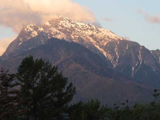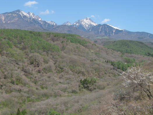 ![]() 八重桜と甲斐駒 |