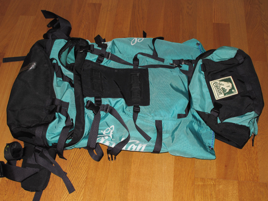 買って18年たつICIエルキャピタン。自分の体に合っているので長く使っているがだいぶボロになってきた。底のかぎ裂きにリペアシートを張ってある。そろそろ新しいやつほしいがこれと同じくらいしっくりくるやつが見当たらない。前に寒さでバックルが固くなったと書いたが全て新しいものに交換。 |